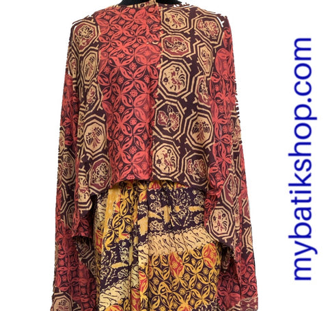 Floor length, yet can be worn as midi, this two-piece dress is so beautiful and easy to wear. It combines the traditional batik motif with a modern-style dress.